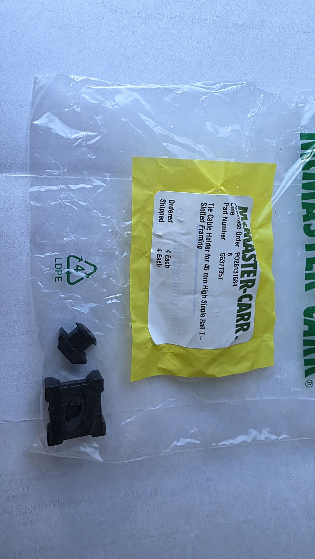 Tie Cable Holder for 45 mm High Single Rail T-Slotted Framing