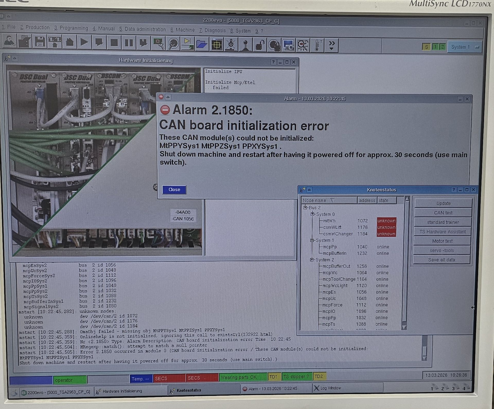 The ETEL we replaced is in the 3rd slot, for the original issue was with the Ejector System motor. During ETEL initialization, the TEB OFF lights are blinking on the ETEL in the 5th slot ( I have attached a snapshot). The alarm I am getting