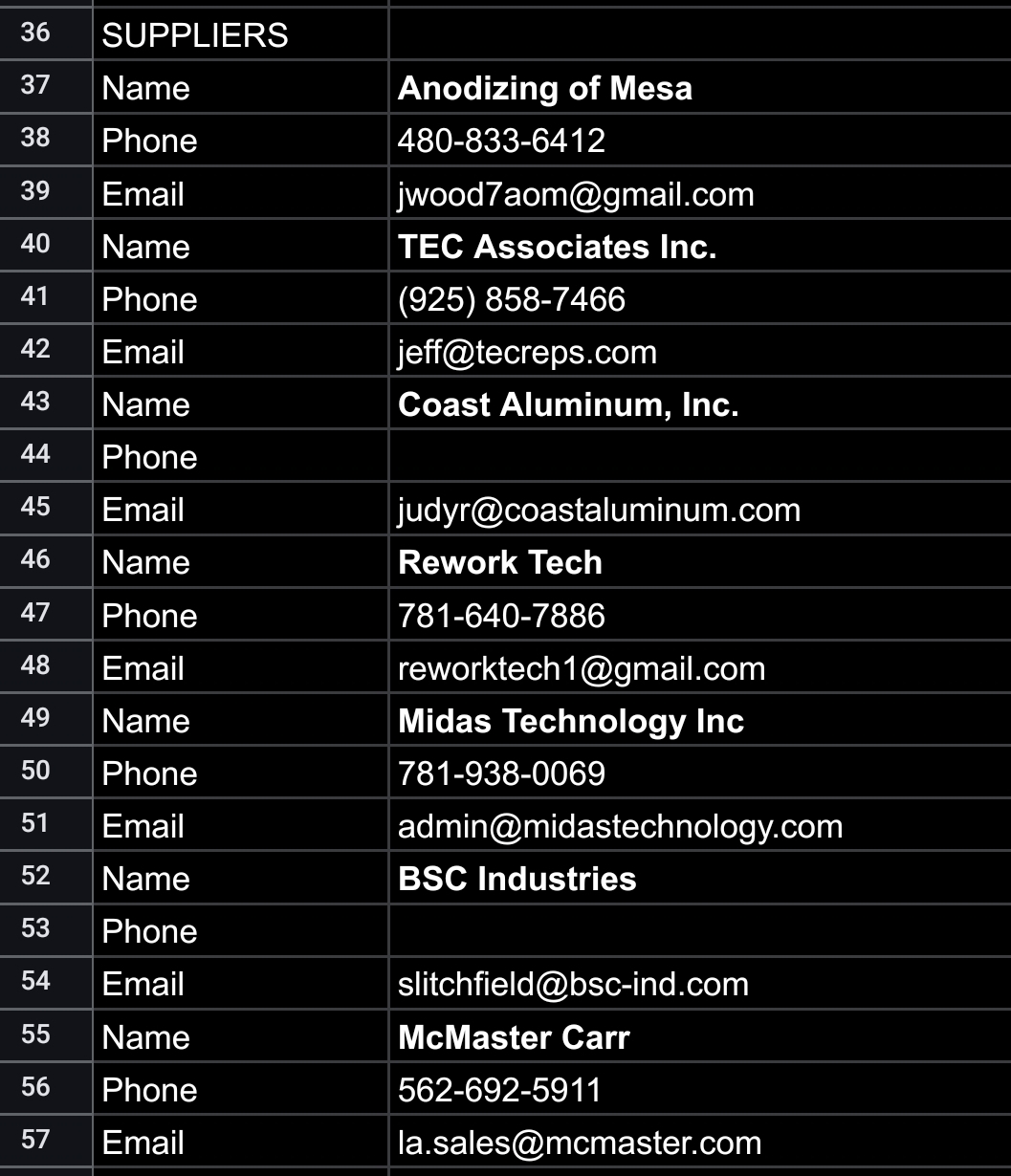 I am requesting 2 additional credit references that I can contact because from past experience the vendors - McMaster Carr and Digikey do not respond to credit inquiries.