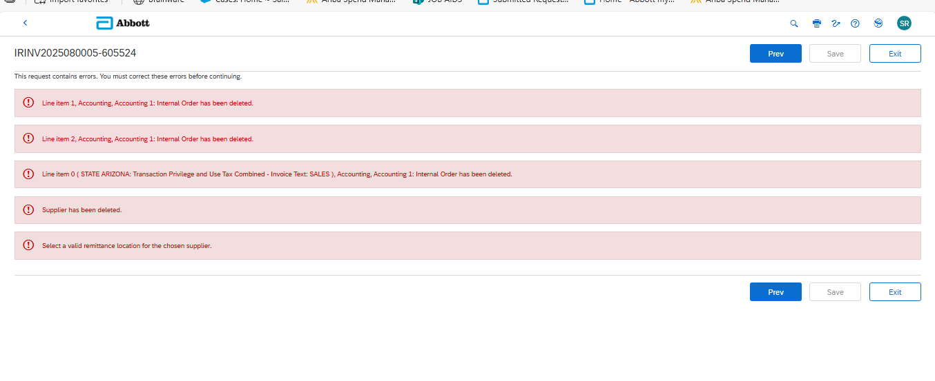 As per the update from our Hub team. The internal order associated with this invoice has been deleted. Kindly review and update the correct internal order.